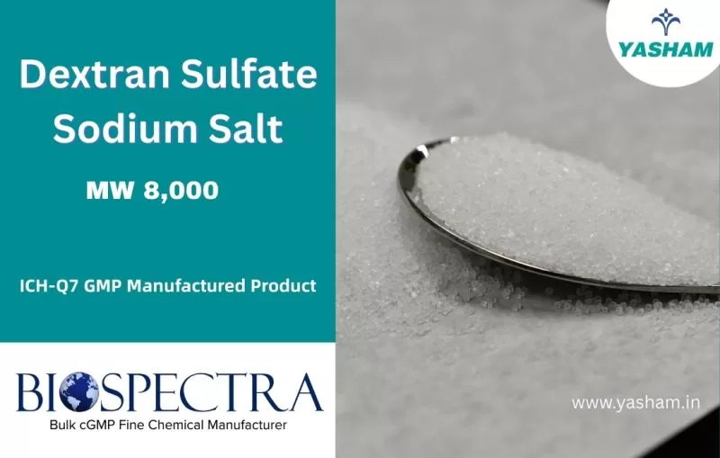 At YASHAM, we are proud to present Dextran Sulfate Sodium Salt MW 8,000 — an ICH-Q7 GMP manufactured excipient that ensures the highest quality and consistency for biopharma applications.